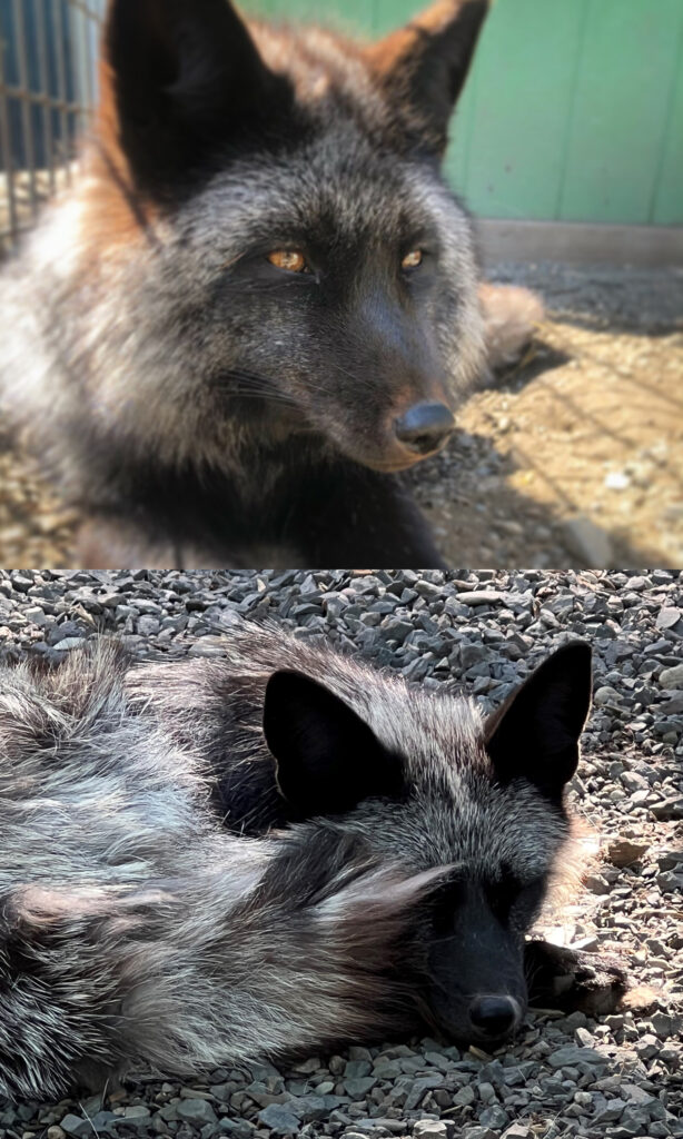 Arriving in June 2019, Jasper and Jinx are silver foxes—melanistic red foxes whose striking coats shimmer with shades of black, gray, and silver.