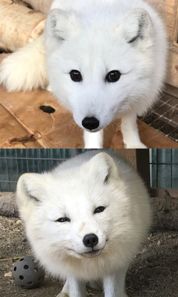 Though hard to tell apart, each has unique traits: Buddy is partially deaf, while Jovie is cross-eyed—neither condition slows them down. They are playful, alert, and perfectly adapted to cold weather, teaching guests about the remarkable resilience of Arctic wildlife.
