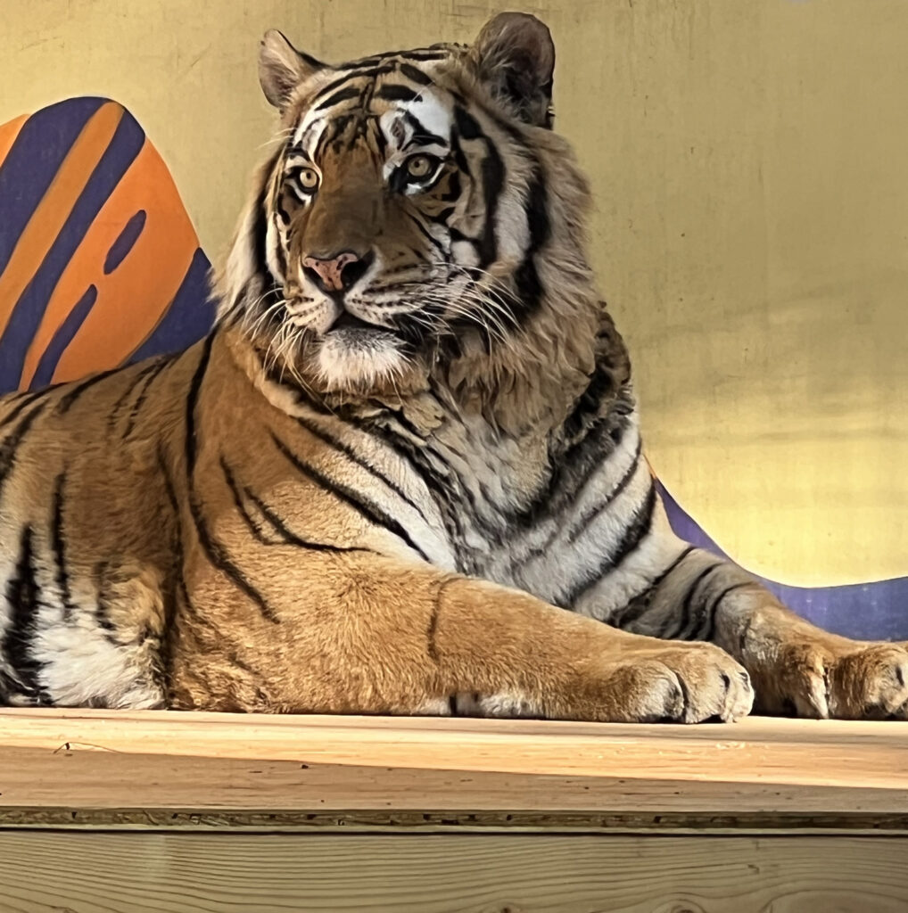 Born May 20, 2010, Tigger was raised by a private owner who used him for photo sessions when he was a cub—a practice once allowed but now outlawed under the Big Cat Public Safety Act, which protects big cats from exploitation. Like many cubs used for photos, he was no longer wanted once he grew too large to handle. Cat Tales stepped in to give him what every tiger deserves: safety, respect, and space to simply be a tiger.